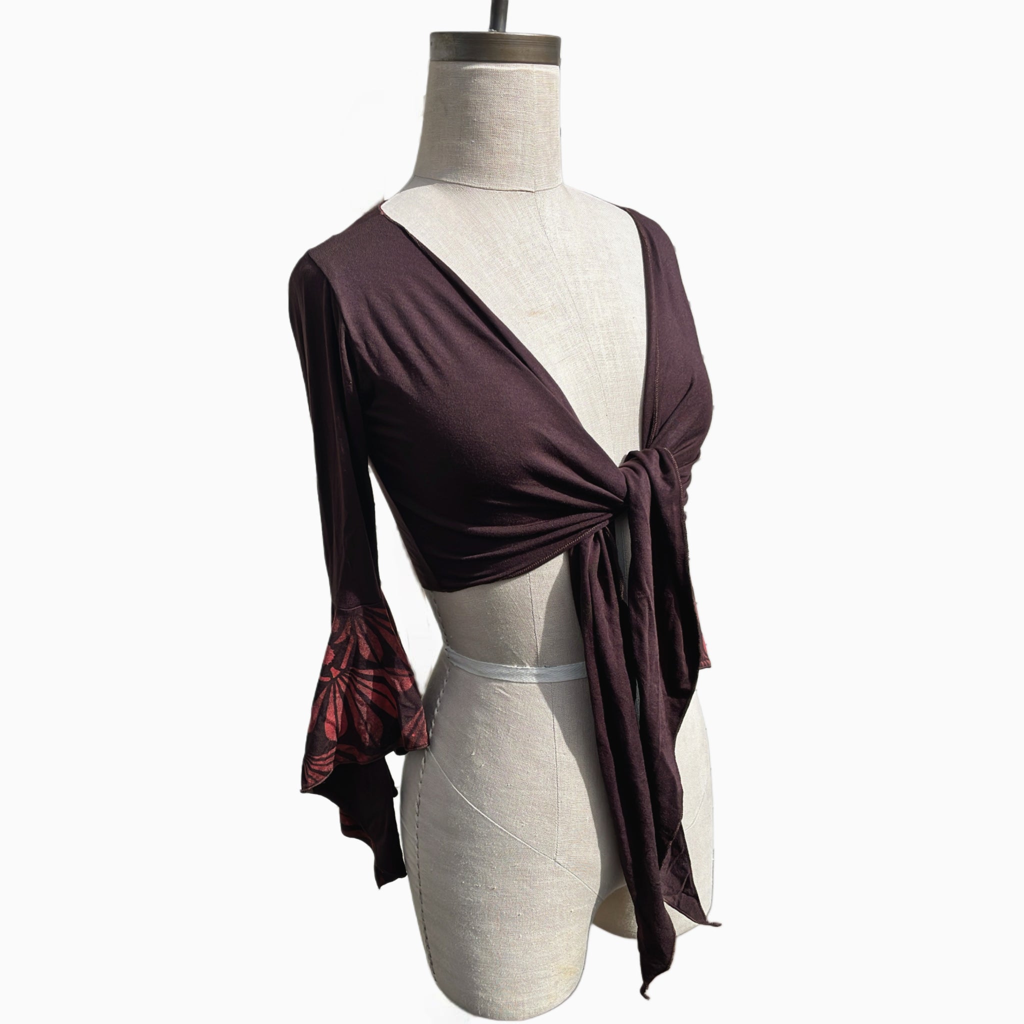 Three tops in one, it can be tied in front, wrapped around and tied in the back or leave the ties undone. Great for travel, festivals, yoga or an evening out. Classy. Comfortable, wrinkle resistant fabric.