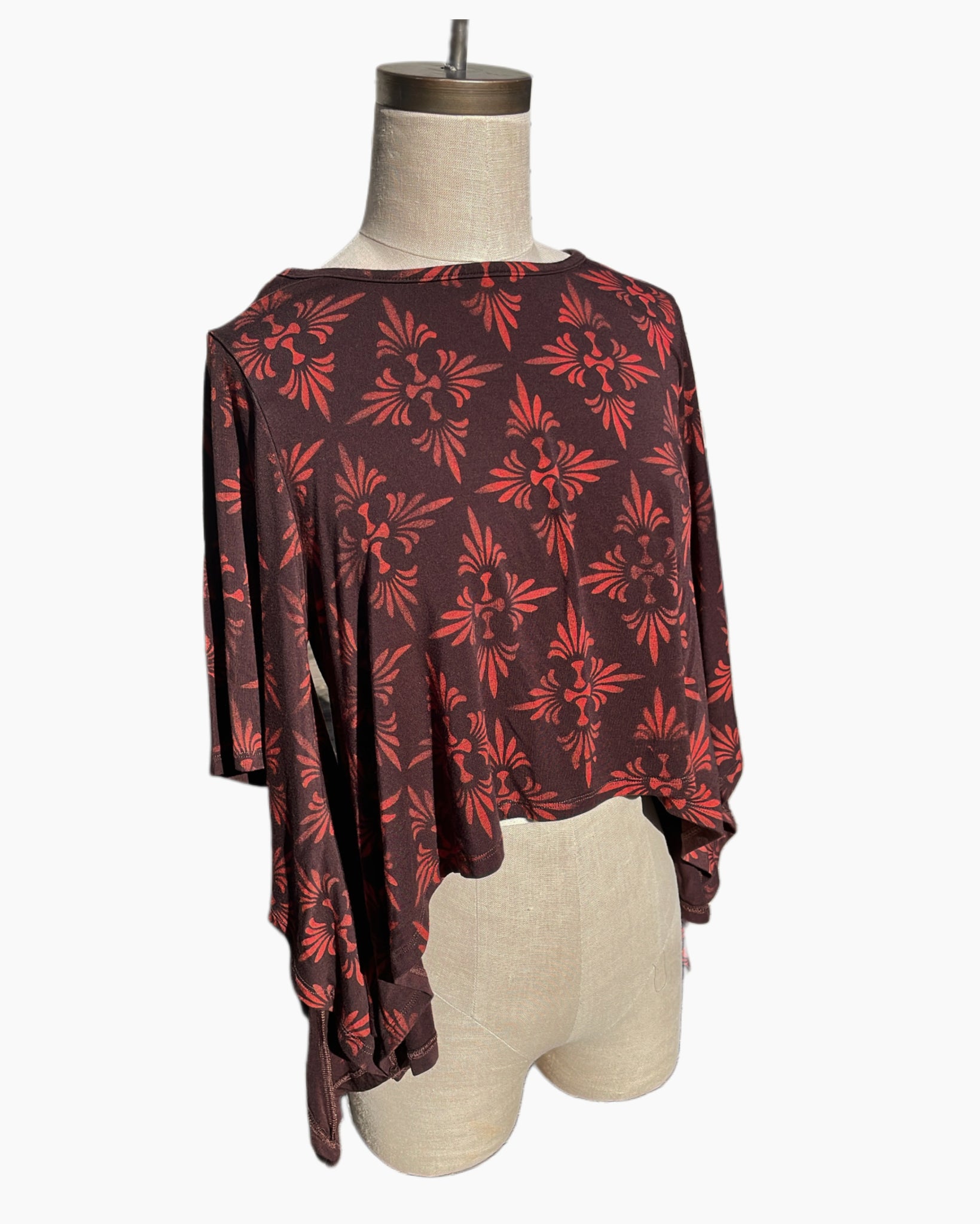 This boho chic classic is not only comfortable, it provides a full-coverage look with a sexy flair. This top is perfect for ecstatic dance with fluted arms and asymmetrical hemline that allow for beautiful expression in movement. Perfect for an everyday look or can be dressed up for a sexy night out.
