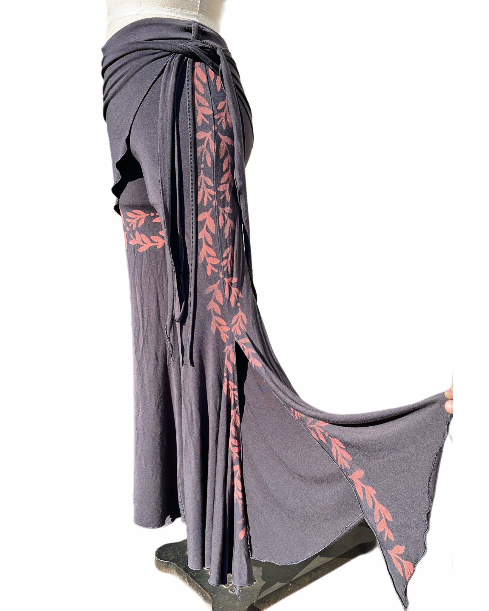 The skirt is reversible! Or Flip the asymmetrical skirt up, tie over the shoulder and around the back to turn these pants into a Onesie!  Made from a soft modal fabric, these pants are super comfortable, and stylish.
