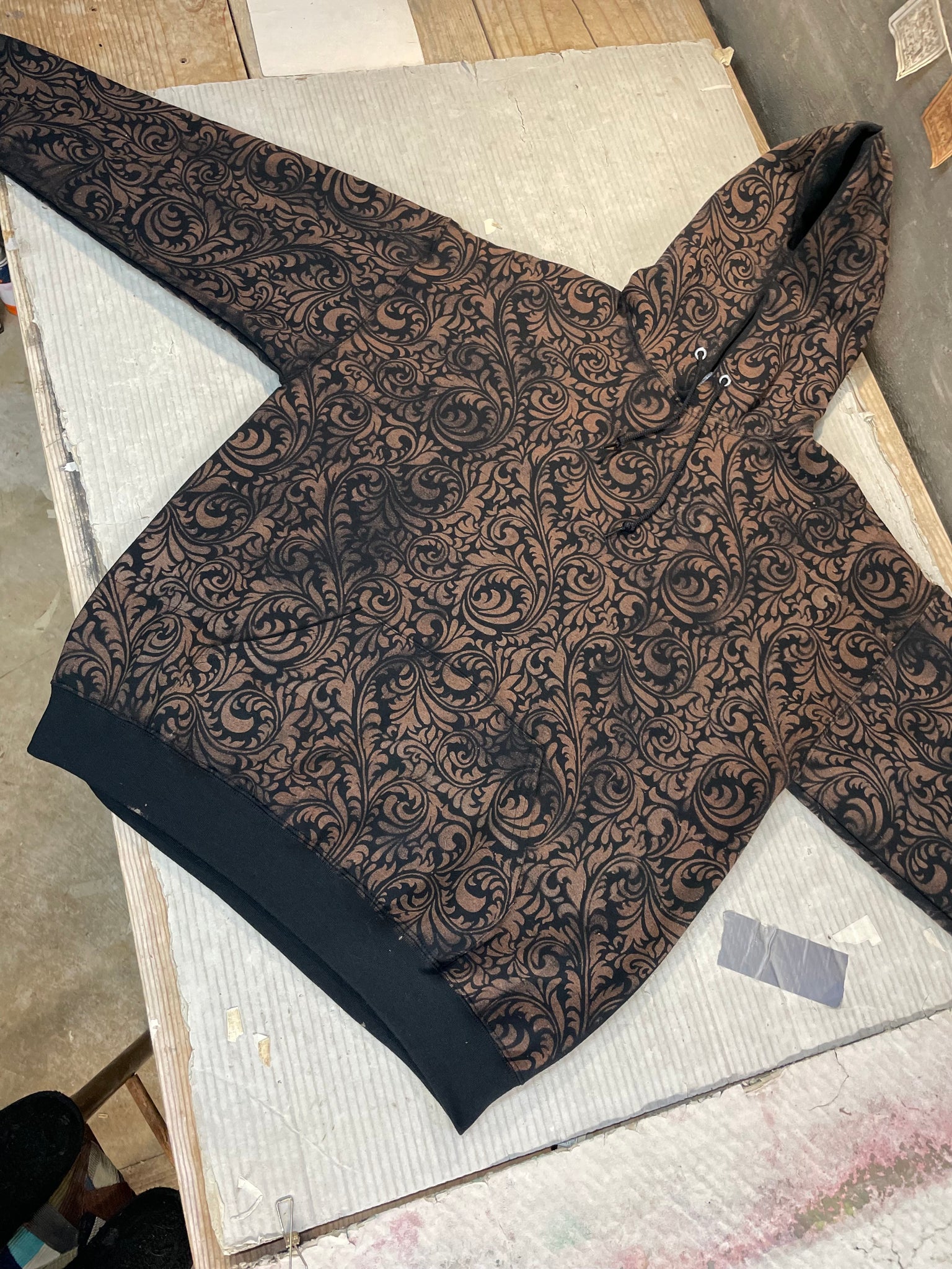 These bleached hoodies are all hand sprayed by me and made to order your size.  Designs dont fade or bleed in the wash!